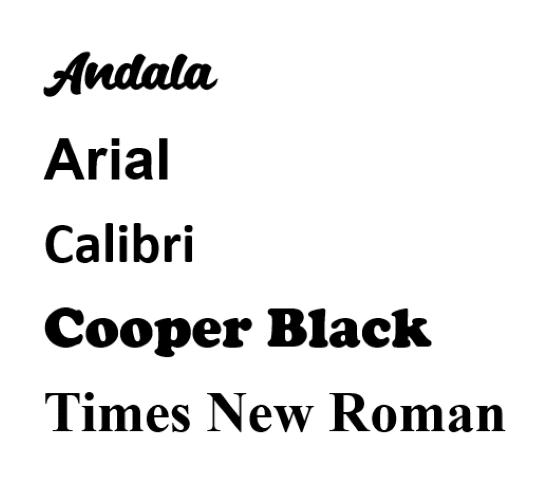 If you have a specific font that you'd like to use, please provide the font name, website where to find it or attach the actual .ttf file in the File Upload section below.
